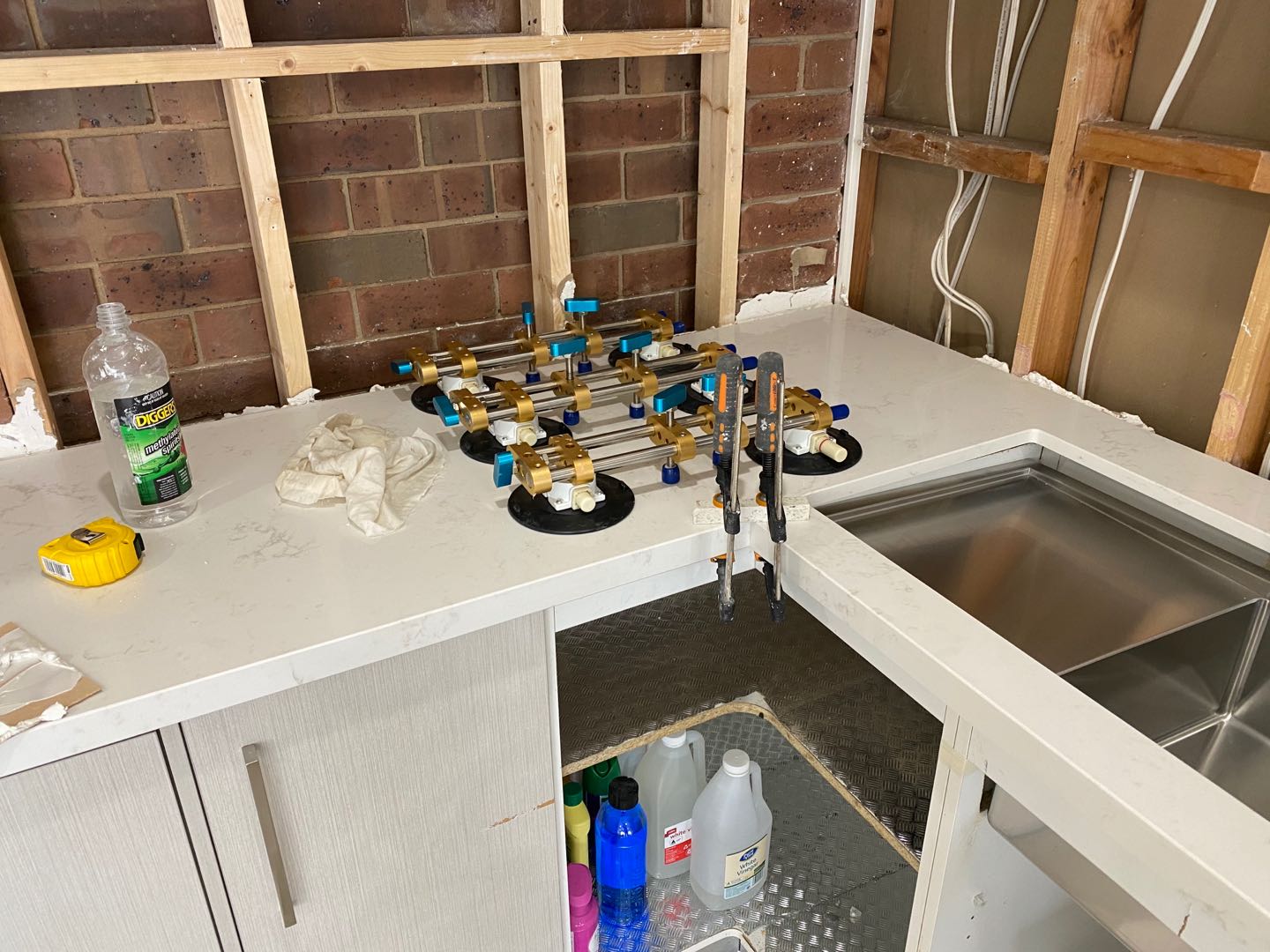 是廚房臺(tái)面平面拼接的輔助工具,拼接后臺(tái)面平整無縫